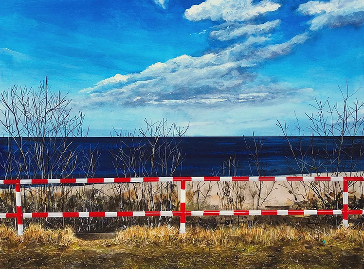 Sue suggested I looked at Narbi Price's realistic paintings [26] to work out how to make my flags stand out. I like Price's use of vertical and horizontal lines across his paintings, and the different textures he has created. Price uses more neutral colours in the background, with bolder tones for the focal points and I would like to try this in my final piece.